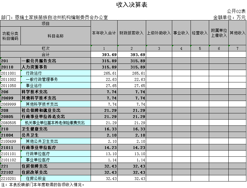 二、收入决算表