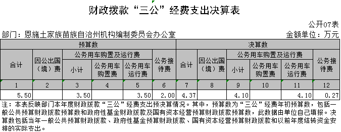 6、"三公"经费:指因公出国(境)费、公务用车购置与运行费、公务接待费。