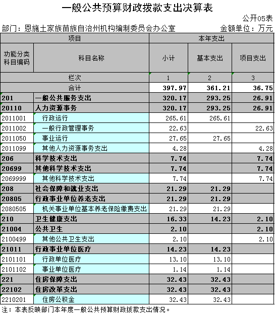 五、一般公共预算财政拨款支出决算表