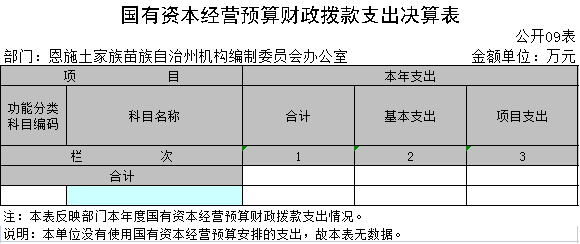 九、国有资本经营预算财政拨款支出决算表