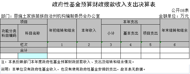 八、政府性基金预算财政拨款收入支出决算表