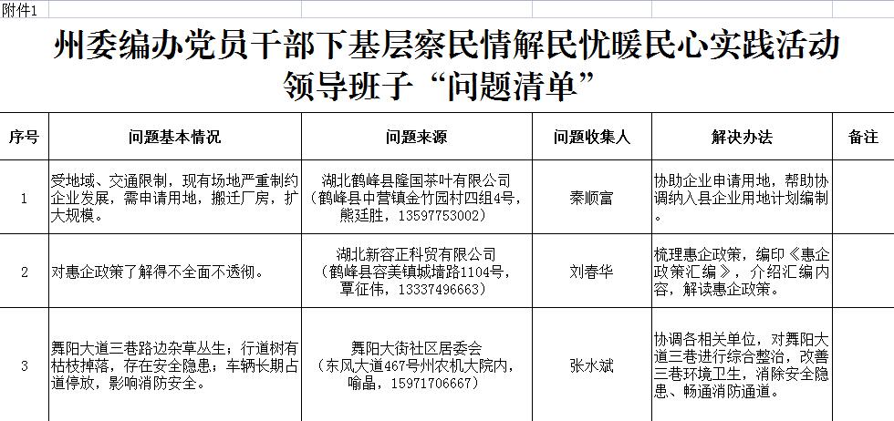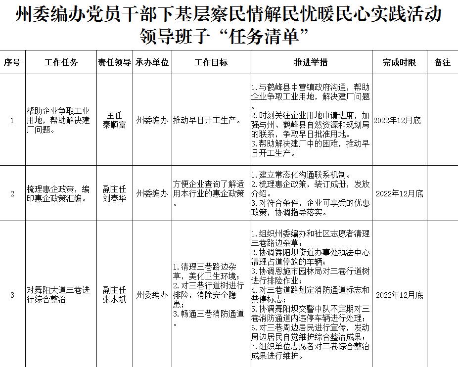 党员干部下基层察民情解民忧暖民心实践活动“三张清单”
