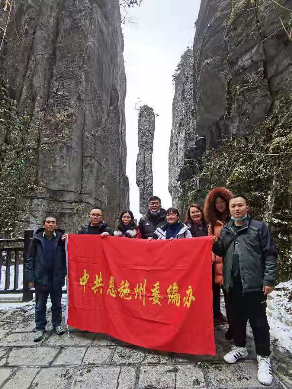 乘坐景区缆车,大家俯视沿途的自然风景。翻过景区天然“石门”,恩施独特的喀斯特地貌映入眼帘,游览绝壁长廊、一炷香、一线天,不禁惊叹大自然的鬼斧神工,随处可见的皑皑白雪更是增添了此次旅游的乐趣。合影人与大自然的和谐相处,购买土家特色农副产品,吃地道农家饭,虽然天气寒冷,但大家的旅途充满了欢声笑语。