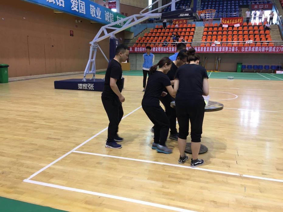 4月26日,州委编办全体干部职工参加了由州委宣传部、州委政法委、州委直属机关工委、州文化和旅游局、州总工会联合举办的第三届“平安杯”庆“五一”州直职工趣味运动会。与115支参赛队伍、1931名职工运动员齐聚恩施州民族体育馆,同台竞技,欢聚一堂。 巨人脚步:齐心合力,整齐步伐向前冲 争分夺秒:分秒必争、团结协作争高分