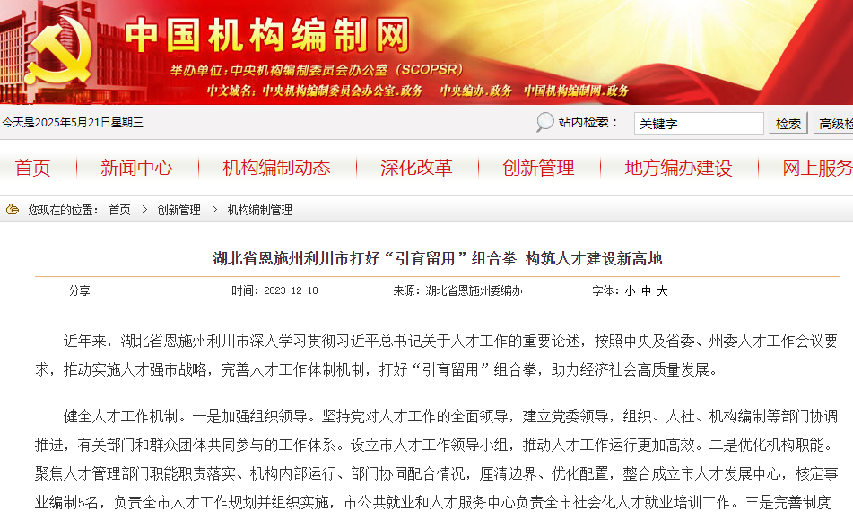 利川市委编办突出“四个环节”提升体制机制保障能力