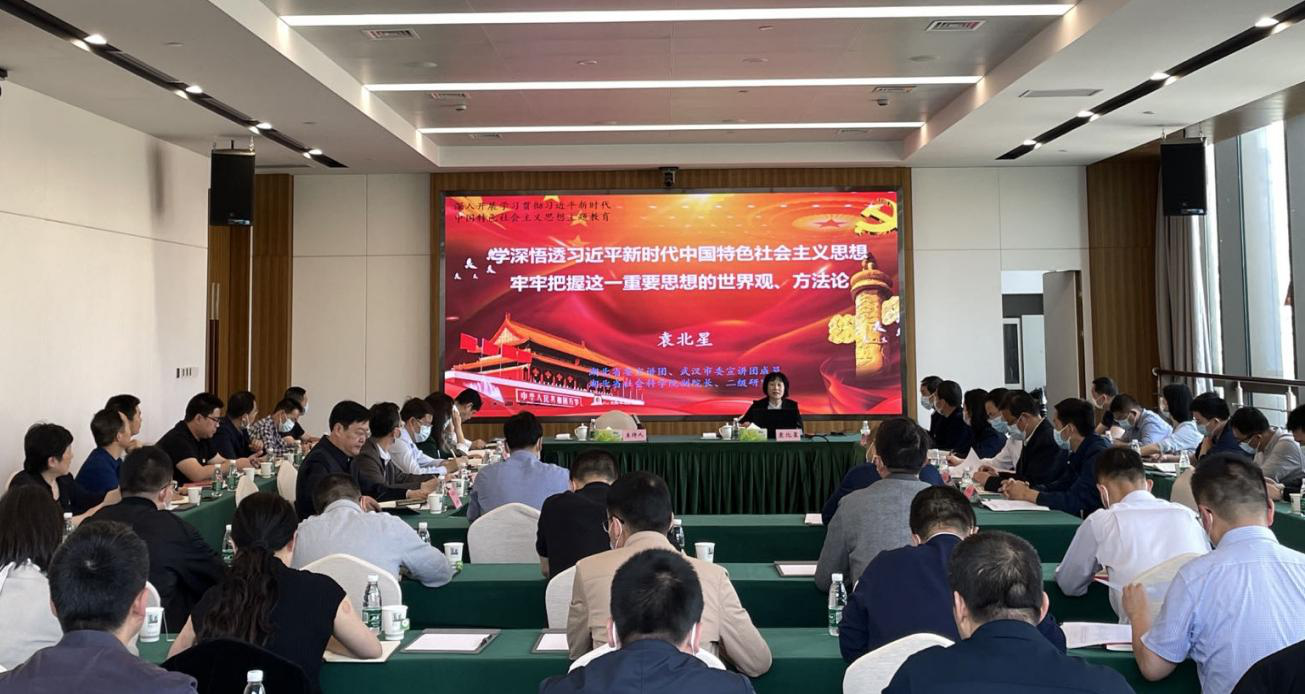 袁北星以《学深悟透习近平新时代中国特色社会主义思想 牢牢把握这一重要思想的世界观、方法论》为主题,从归根到底是“两个行”,深刻揭示我们党坚定信仰信念、把握历史主动的根本所在;根本途径是“两个结合”,始终保持马克思主义的蓬勃生机和旺盛活力;精髓要义是“六个必须坚持”,牢牢把握新思想的根本立场和理论品格;重要任务是“两个改造”,自觉用新思想指导各项工作等4个方面,深入解读了习近平新时代中国特色社会主义思想所蕴含的世界观和方法论,进一步帮助办机关党员干部全面深入理解把握新思想,把学习成果转化为指导实践、推动工作的实际行动。