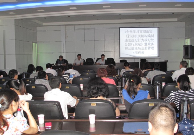 2013年5月27日,恩施州编办组织召开了全州学习贯彻落实《行政机关机构编制违法违纪行为政纪处分暂行规定》暨政务和公益域名注册管理培训会,并下发了《关于进一步做好党政群机关和事业单位中文域名注册管理工作的通知》,在州直机关的培训会上,州编办张水斌副主任就中文域名注册的重要性和紧迫性及国际申请形势、全国域名注册管理工作的进展等情况进行详细的说明。并对州直机关、县市编办开展中文域名注册工作进行的业务培训。