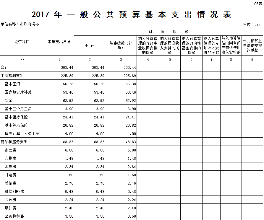1、基本支出预算303.44万元,主要用于:在职、退养、离休、退休人员基本工资、津贴补贴等人员经费,以及办公费、印刷费、办公设备购置费、办公楼运行维护费等日常公用经费支出。较2016年预算273.09万元增浮10%,主要是人员经费的年度自然增长。